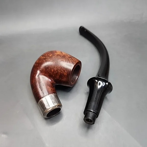 Those with a taste for early briar pipe history may note the interesting similarity between this pipe and early patent-era Peterson pipes. After all, this pipe not only has the distinct proportions and silver collar of a Peterson System pipe, but also has a flared, tall, P-lip style stem, much like the earliest System models. Like Savinelli and Vauen, WDC tried their hand at creating their own alternatives to the dry-smoking designs of Peterson pipes, including P-lip alternatives. The Wellington, which debuted around 1915, is one of those pipes.