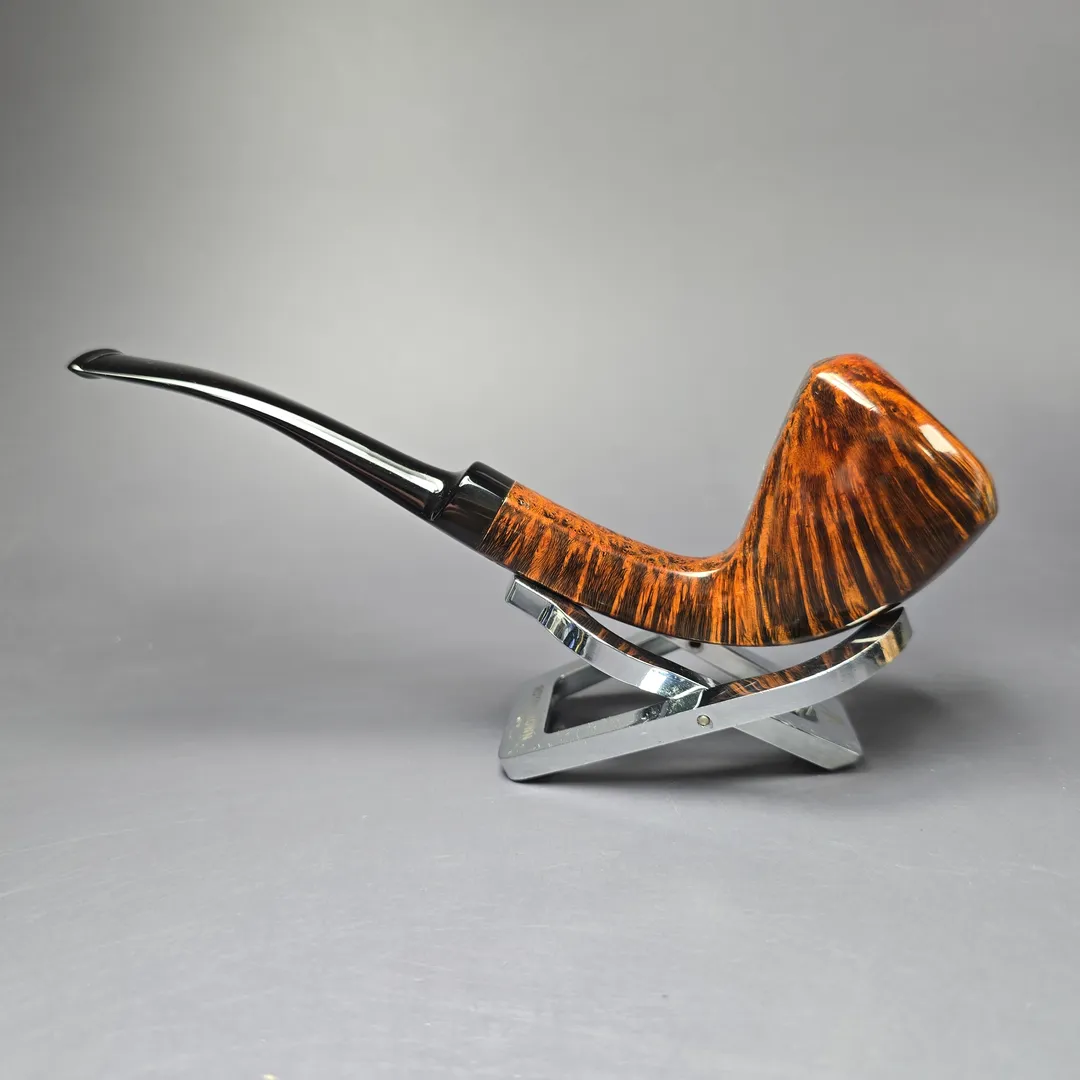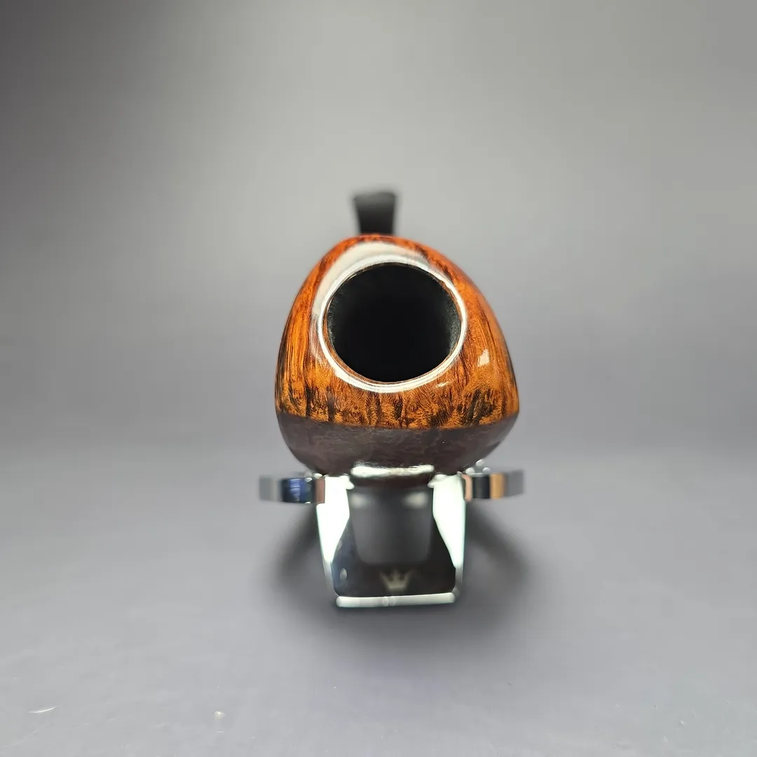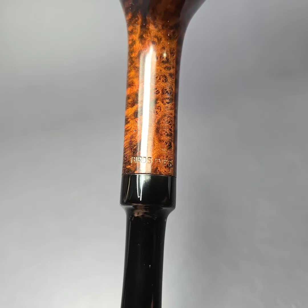 As with the workshop’s venerated Straight Grain pipes, WO Larsen’s “Birds Eyes” pipes were made, from start to finish, by its most seasoned, master carvers. This distinguished Birds Eyes pipes from WO Larsen’s standard output, as well as its premium Select grades, but so did the quality of a Birds Eyes pipe—again, just like the Straight Grains. The difference between Birds Eyes and Straight Grains was, as the name implies, to do with how their carvers employed grain patterns in the briar they used. As one might expect, the designs of Birds Eyes and Straight Grains were also usually different, as a consequence of how the briar was oriented during carving so as to maximize the beauty of its natural forms. The cobra, a mainstay of Danish pipe making, has long been a vehicle for expressing the most captivating bird’s-eye patterns, so it’s little surprise that this Birds Eyes grade F is just such a shape. Featuring a broad, unbroken plane that stretches from the bowl’s forward outer lip right down to the underside of its shank end, its its eponymous patterning is immaculately presented, making this WO Larsen well worth the extra accolade.