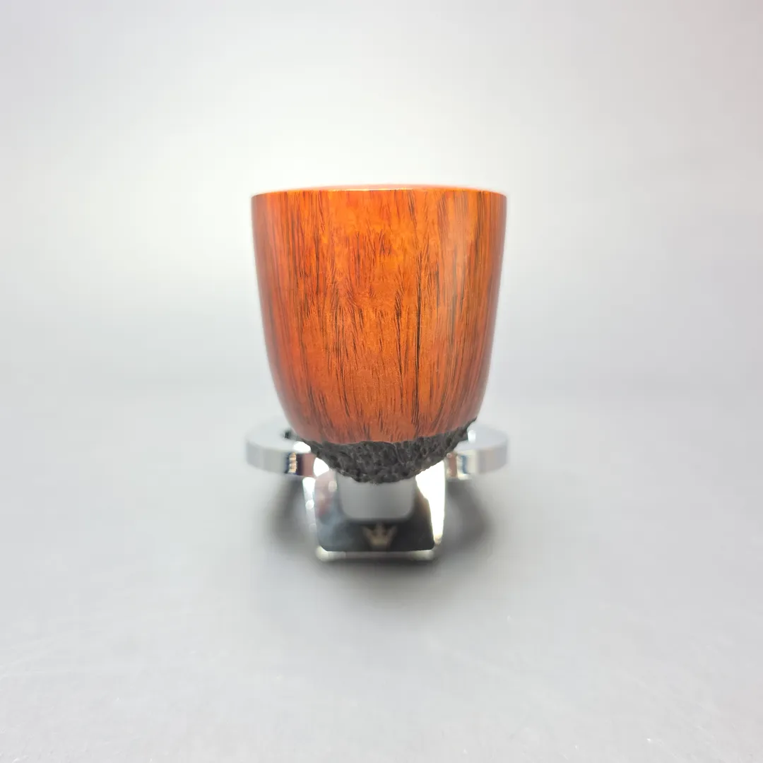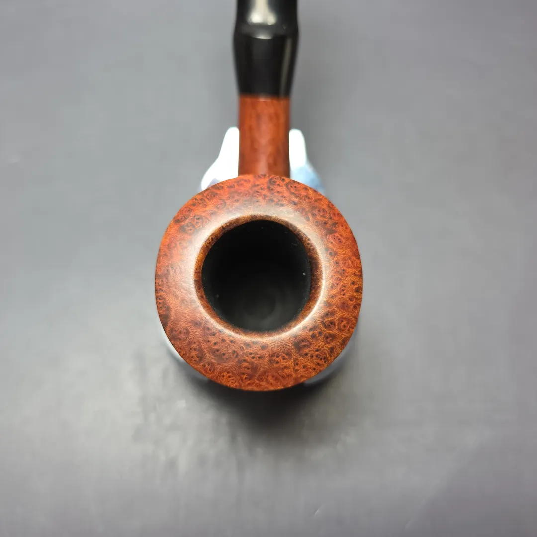 Like the Italians and the Irish, the Danes had their own, distinct approaches to rustication. Though I’m not sure of its precise origins, the type of fine, micro-rustication seen here was brought to prominence by Peter Brakner, through his own approach to high-grade handmade pipes. [What was at one point named] W.O. Larsen’s Rustica line blended smooth and micro-rusticated finishes to great effect, typically either in the form of a “fumed” style rim, or, as in the case of this one, a textured base, adding an ergonomic element to the motif. Unsurprisingly for a W.O. Larsen, the straight grain on this Danish-style Dublin is genuinely exquisite, which makes it all the more interesting to juxtapose such with a dash of fabric-like, fine, dark rustication at the bottom of the bowl.