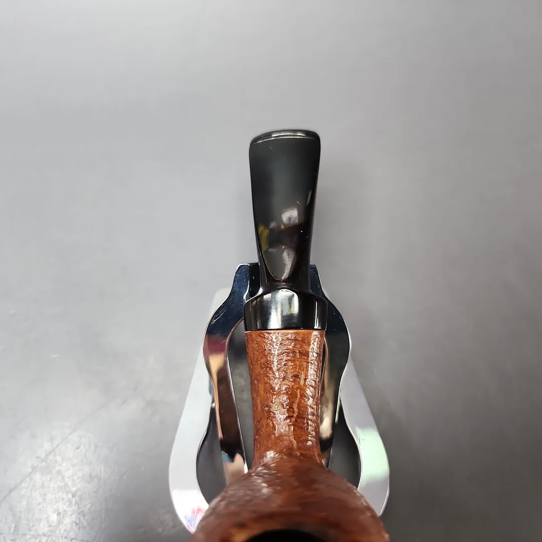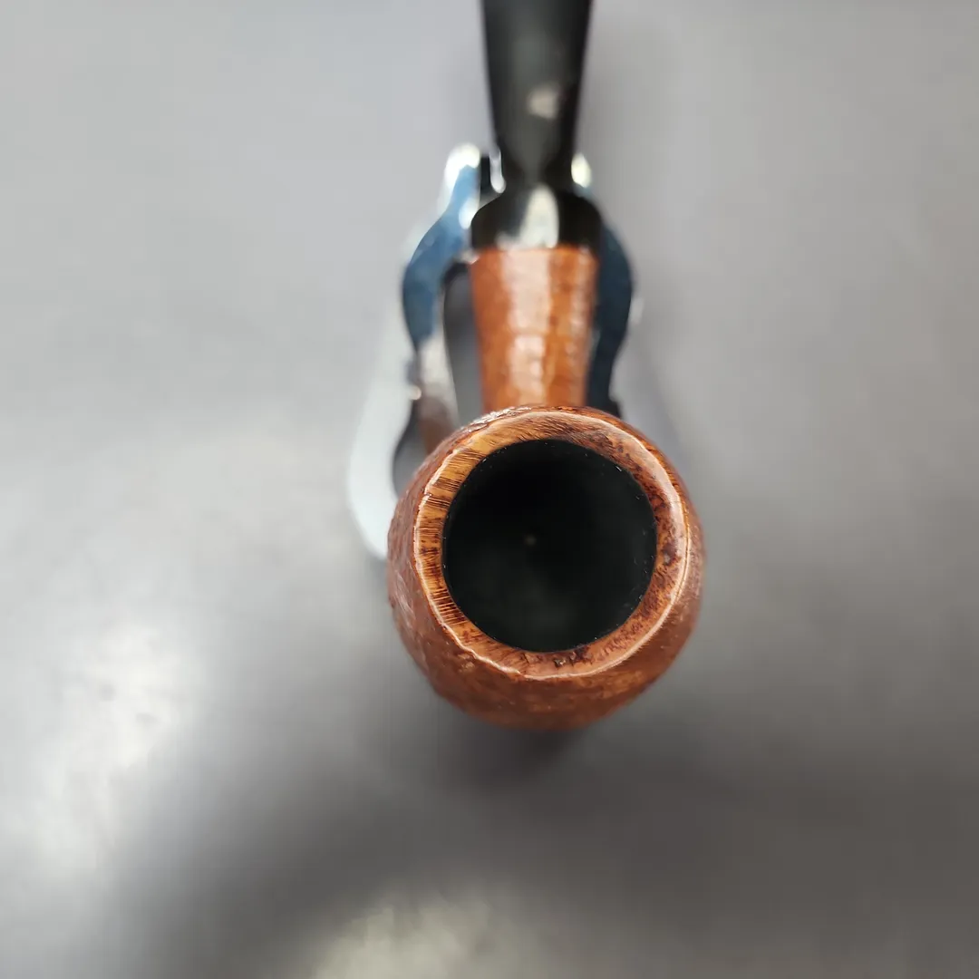 This is certainly one of the stubbiest, most pocket-friendly WO Larsen pipes I’ve had the pleasure of handling, though that hasn’t stopped it from holding onto the workshop’s signature, eminently Danish shaping. While it is quite compact (and, similarly, nicely lightweight), it is nonetheless characteristically bulbous, with a graceful 1/8th bend dipping and rising into a sizeable, deep-chambered egg rendition. The sandblasting is an interesting touch, too, with the result looking almost like if Dunhill had ever pursued a “Danish Tanshell.”